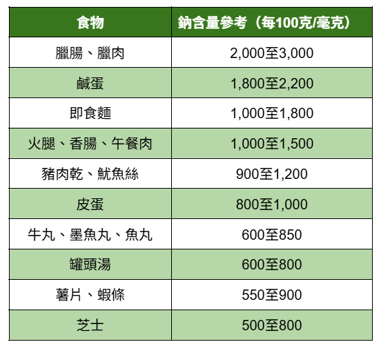 香港常見高鈉食物表